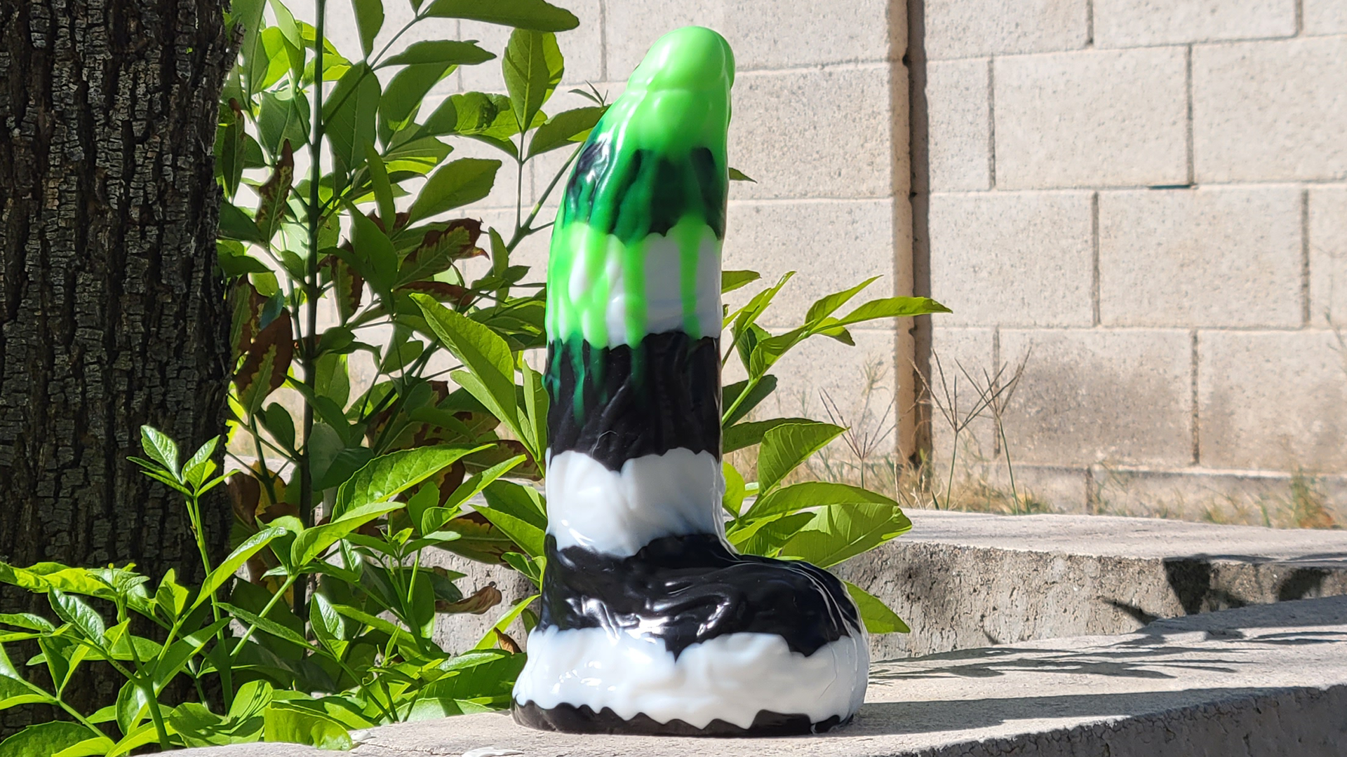 Soft Firmness, poured in our special UV reactive "Poison Apple" coloration. A bright UV green with a bright UV red run down.