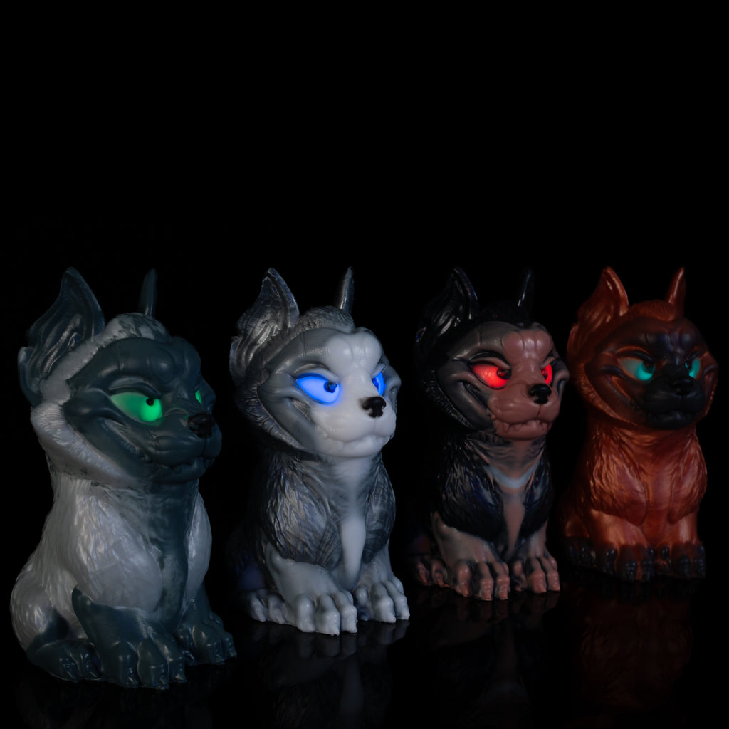 Awuwu Example 3 - UV Green eyes, black muzzle with no chest run down, black toes and copper backfill
